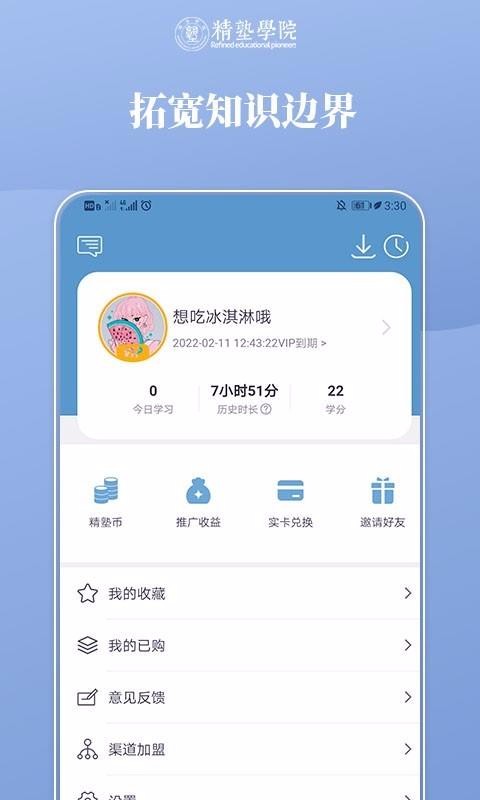 5、数据统计,随时为你统计你的今日学习数量、历史时长和获得的学分;