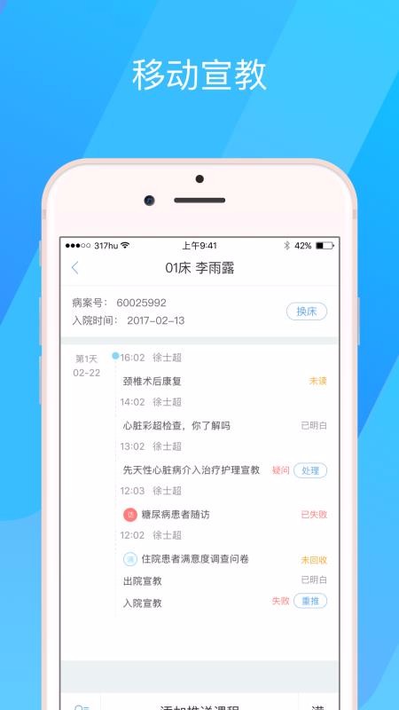 2、点击进行宣教,选择宣教的患者进行推送,查看阅读的状态