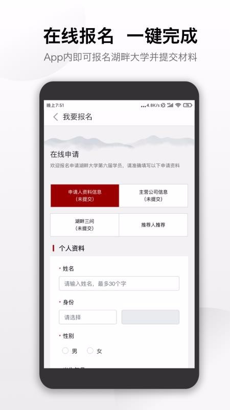 4、编辑自己的个人报名信息,在提交报名申请之前就能在个性资料栏中编辑个人信息;