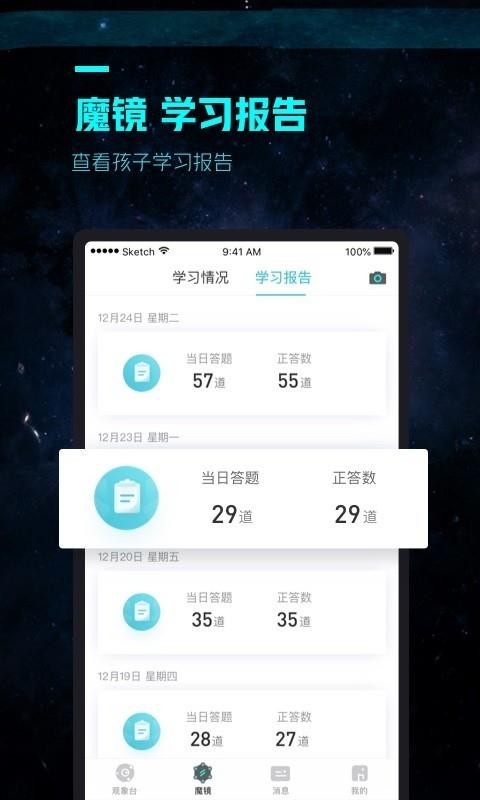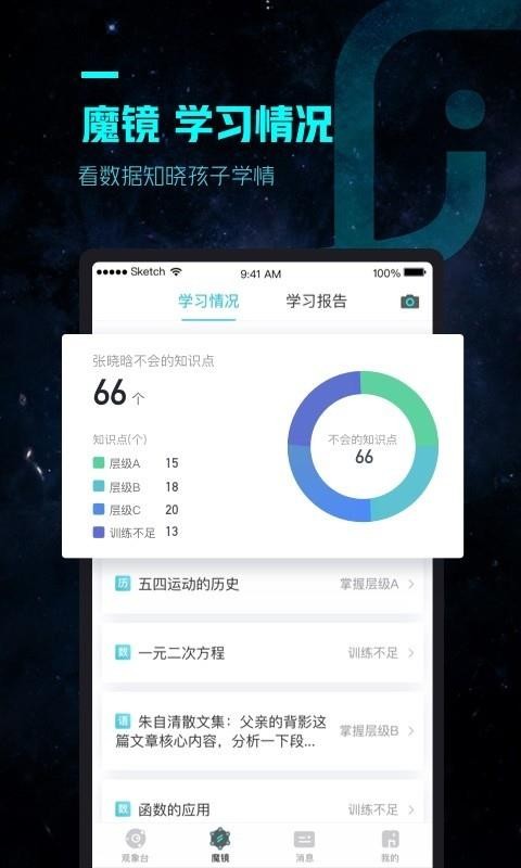 4、点击魔镜,即可进入到魔镜界面,点击学习情况,即可进行查看当前的学习情况