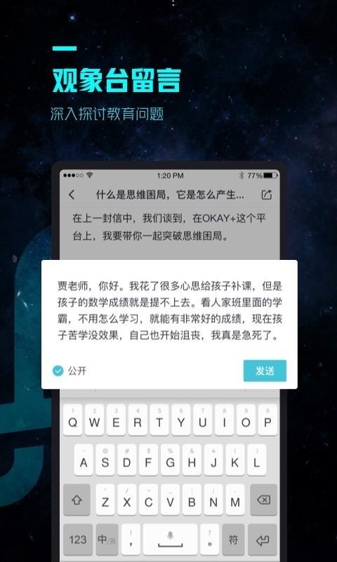 2、书写观象台留言,阅读完观象台的资讯,及时进行相应的留言,记录自己的想法;