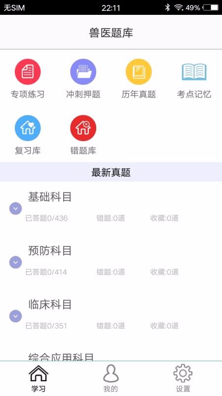 2、登录后进入到首页中,在这里能够看到大量的兽医专业题目