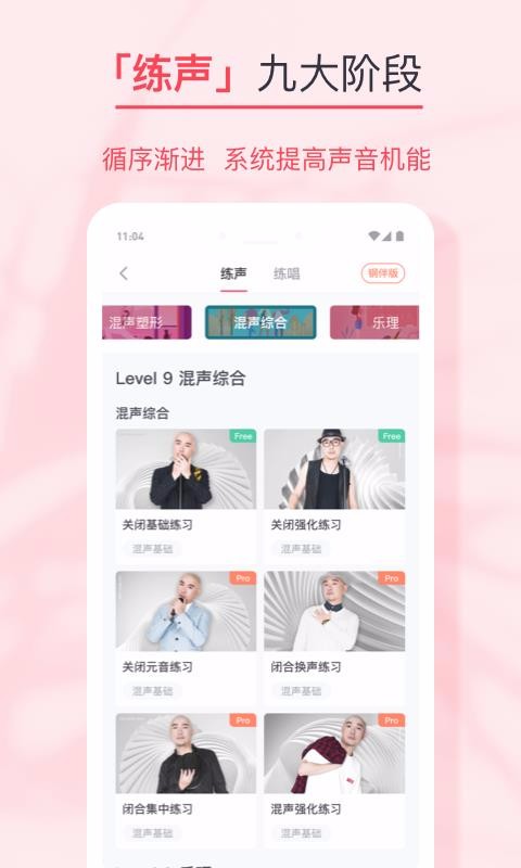4、循序渐进的声音练习阶段,根据专业的声乐学习研究提供了九个不同的学习阶段;