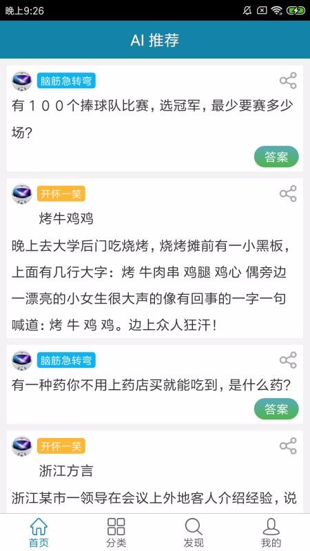 2、每天都会利用AI技术为用户推荐超多有趣的脑筋急转弯,点击就能练习;
