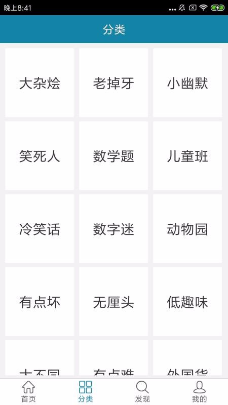 6、按照老掉牙、小幽默、数字谜、外国货等分类显示,自由选择练习;