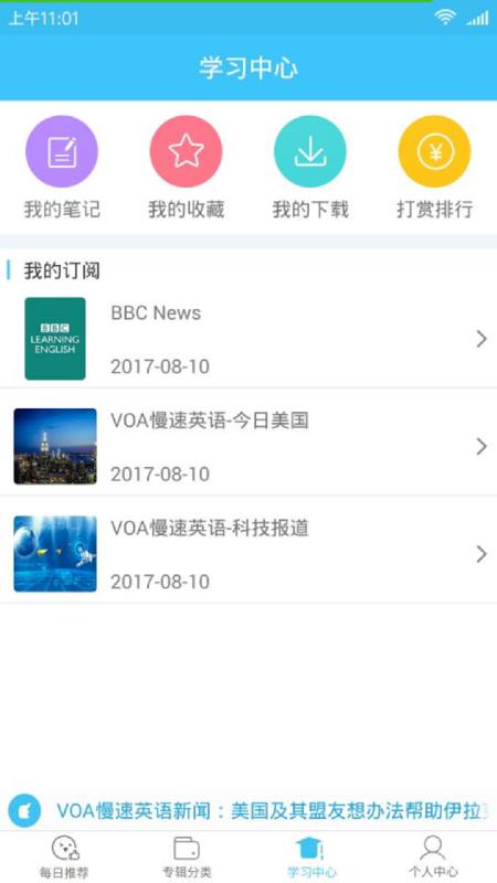 5、英语新闻,推荐了各种类型的新闻,包括VOA慢速、BBC英语、CRI英语、经济学人等;