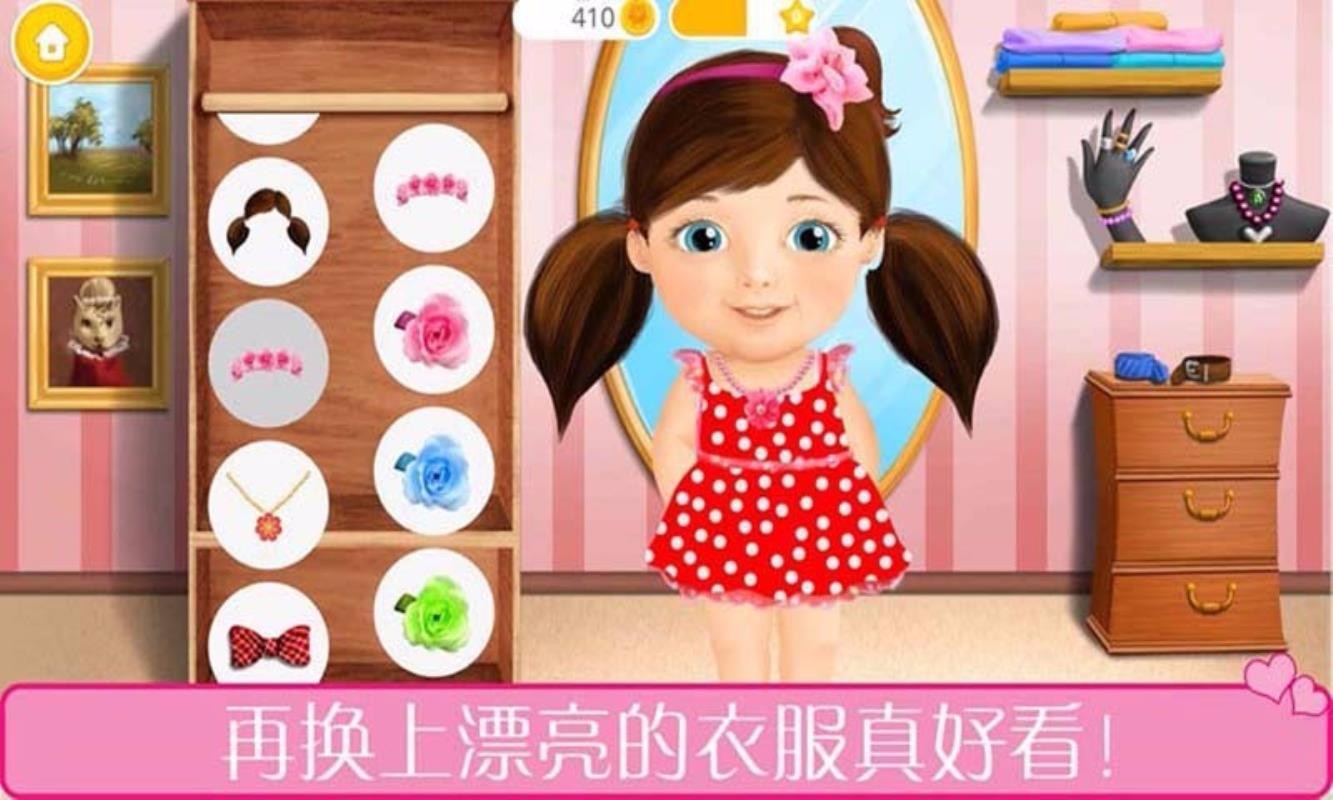3、给少女穿上好看的衣服,能在衣橱中挑选出一套好看的衣服套装为少女换上;