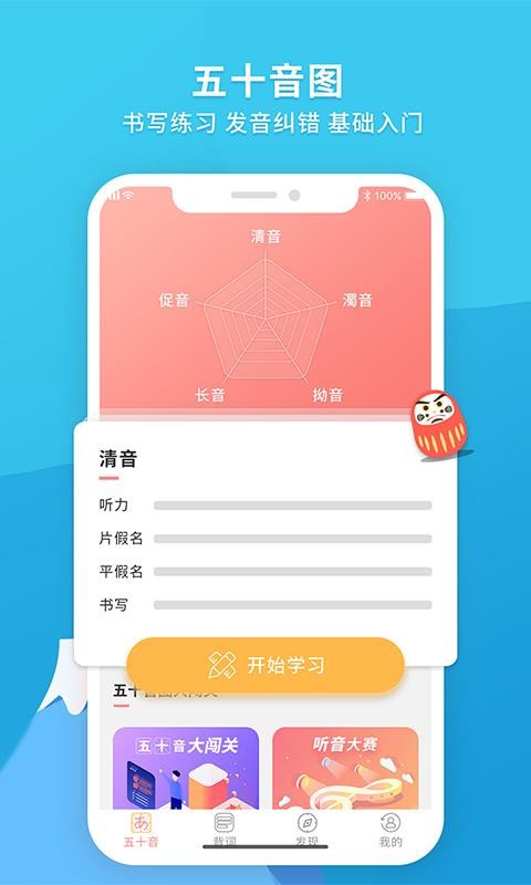 2、提供五十音图基础入门,让用户可以打好扎实的日语基础;