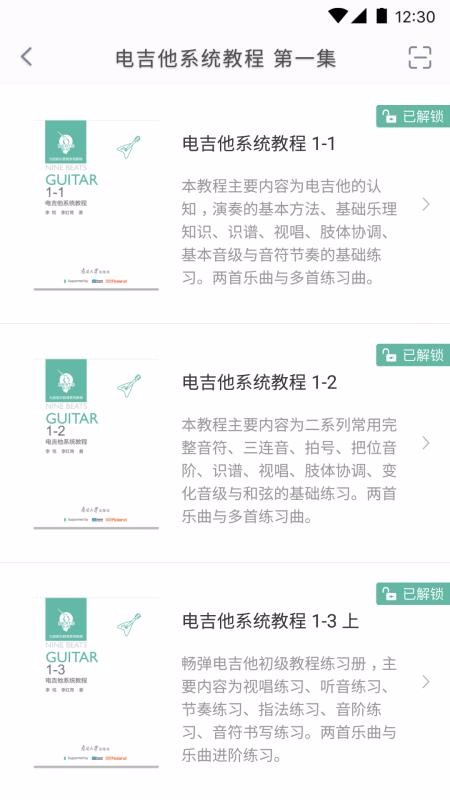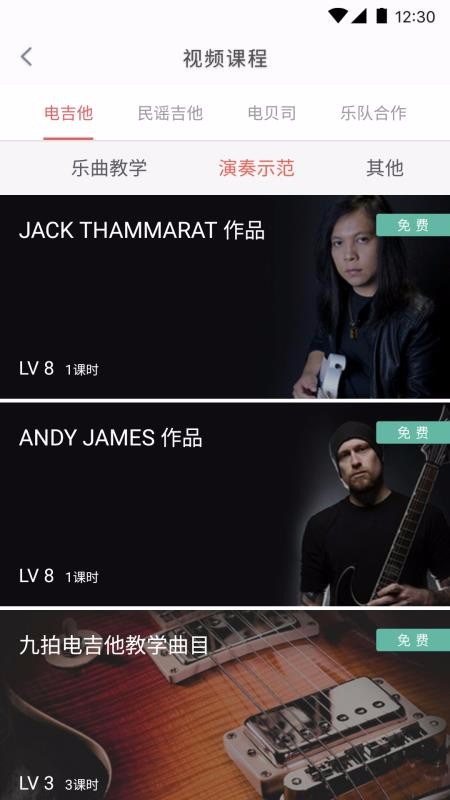 3、系统会将不同的吉他课程进行分类,方便用户在平台上选择课程进行学习;