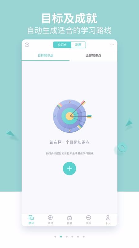3、进入学习页面可以点看学习知识点,添加自己的一个目标知识点