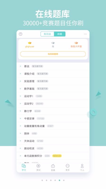 6、拥有四个学科的竞赛知识,学生可以根据自己的需求在线随意切换不同的学科;