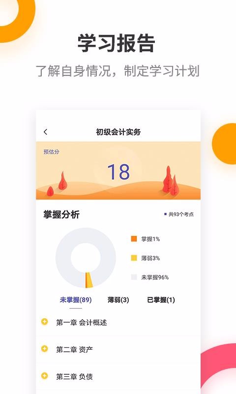 5、学习分析:智能显示你学习的成果和收获,可以清楚的查看不足之处;