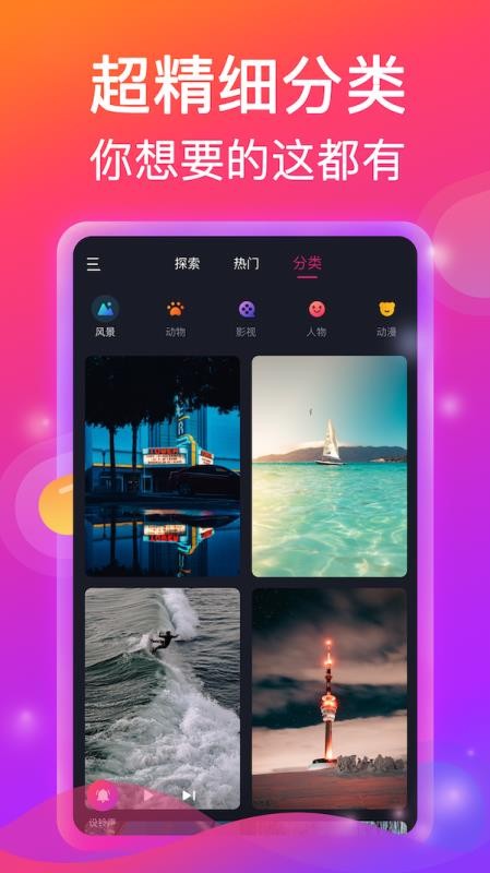 6、不仅为用户提供了大量的来电视频,更有各种优质的手机壁纸和热门的手机铃声供您自由的选择;