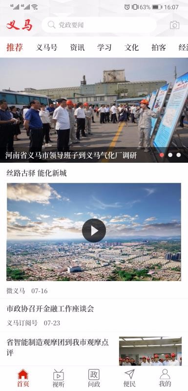 云上义马是一款资讯浏览app,主要为用户提供推荐的新闻资讯内容,还有各种不同的资讯文章栏目,能看到文化方面的资讯或财经方面的资讯信息;推荐栏中的资讯不仅提供文章类的资讯资源,里面还夹杂了许多的视频新闻内容,可以在边观看视频的时候边了解该视频的展示信息;首页的各种新闻资讯栏目中增加了学习的栏目中心,里面为群众创造了一个学习的平台渠道,提供许多的学习资源供用户们在线学习;应用的服务中心展示了非常简洁的各种服务图标信息,对这些服务能一眼就判断出它们的作用,能快速找到自己需要的服务使用。