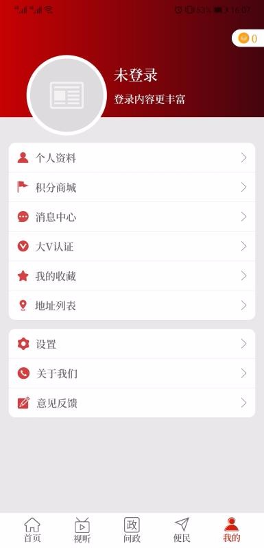 6、个人中心设置了许多的管理栏目,不仅能管理个人资料,还能进入积分商城兑换产品,或管理自己的地址;