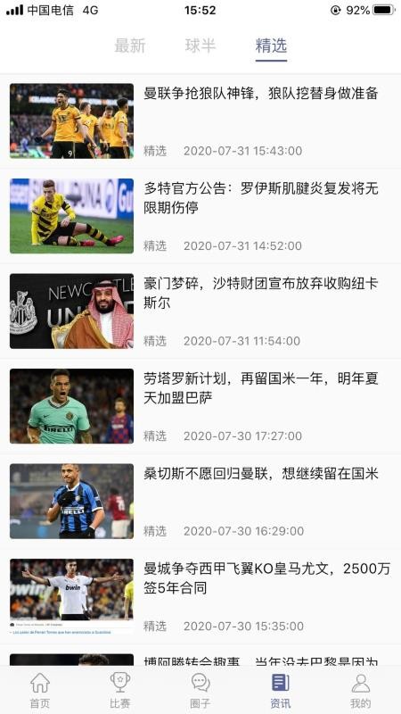 2、及时更新最新的资讯信息,点击最新可以查看最新的比赛新闻;