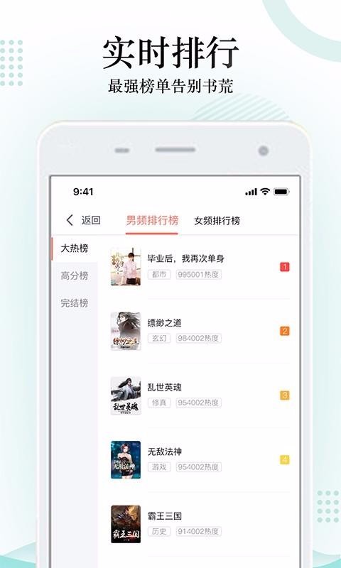 4、各种排行榜可以看到最热门最受读者喜欢的优秀小说;
