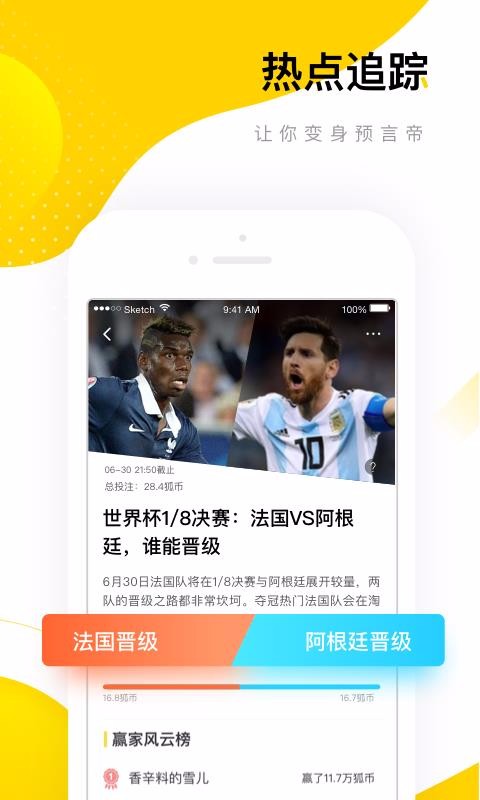 3、实时跟踪热点资讯,还可以进行热门竞猜,自行根据资讯的介绍进行投票;