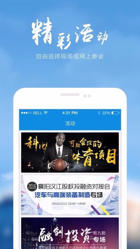 1、汇集了各行业的融资和投资专场活动,提供了线上和线下两种参会方式;