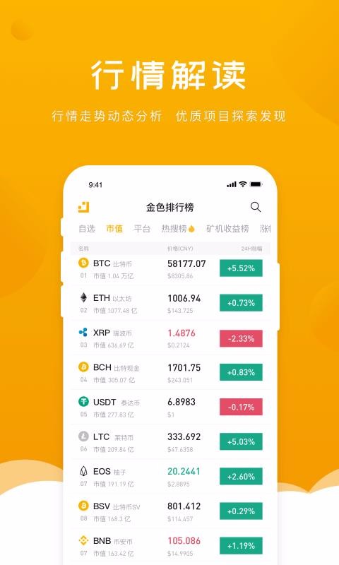 金色财经app是专注于提供财经信息查询的智能软件;这里向用户提供众多的市场行情,用户可以及时的查看了解详细的行情;可以选择查看平台推荐的重多财经资讯,详细的了解最新的资讯内容,及时的掌握第一手资讯;这里是非常专业的资讯平台,信息都是真实有效的,内容非常的完整详细,能够让用户收获到更多有用的信息;通过不同的栏目进行推送各种各样的信息,及时的传达行业的动态,非常的迅速;只要你下载这款软件,就能够实时的掌握专业的信息,让你的投资更加的明晰,能够有效的进行投资等。