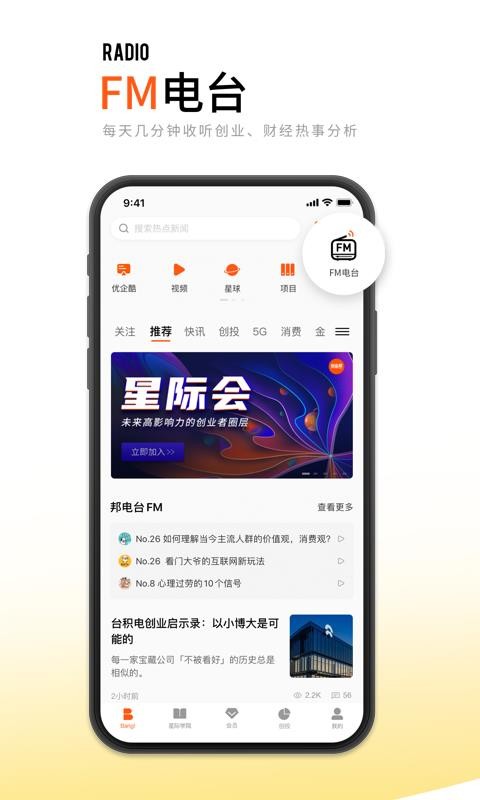 1、平台里具有电台可以收听各种创业情况,让你能够更好的进行使用;