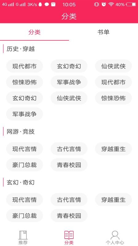 4、点击分类,用户可以在这里快速的选择自己喜欢的小说