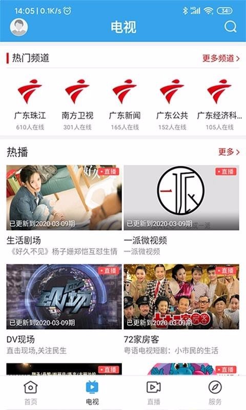 3、点击电视,查看平台提供的电视频道,选择直接观看热播内容
