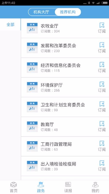3、点击政务,选择机构大厅或推荐机构