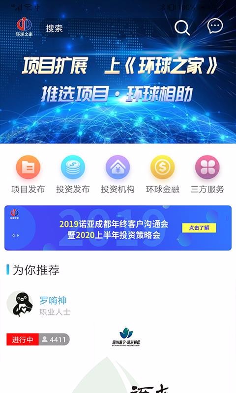 环球之家是一个资讯和交友平台,还提供各种咨询服务,咨询的方面包括金融服务、财税解读、项目投资等内容;该平台中介绍了关于环球的各种信息,有环球介绍、环球机构、环球活动、环球时讯、环球公益等专区;随时在首页显示今日要闻,每个新闻都标注了具体的年月和日期;还会为你推荐专业的职业人士,通过直播为你分享项目只是和经验,你可以在线观看并与之互动;可以在该平台中查找各种投资机构,选择机构后还可以在线进行沟通;用户也可以在该平台中发布项目或投资信息,等待有需求的用户进行联系。