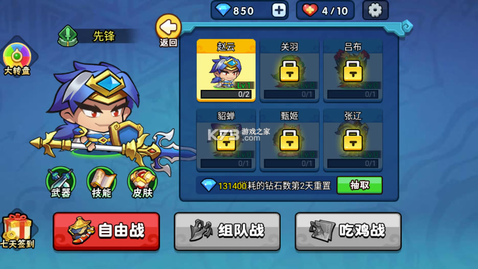 拥有赵云、吕布、关羽、张飞、貂蝉等英雄,不同的英雄有各自的武器和技能。