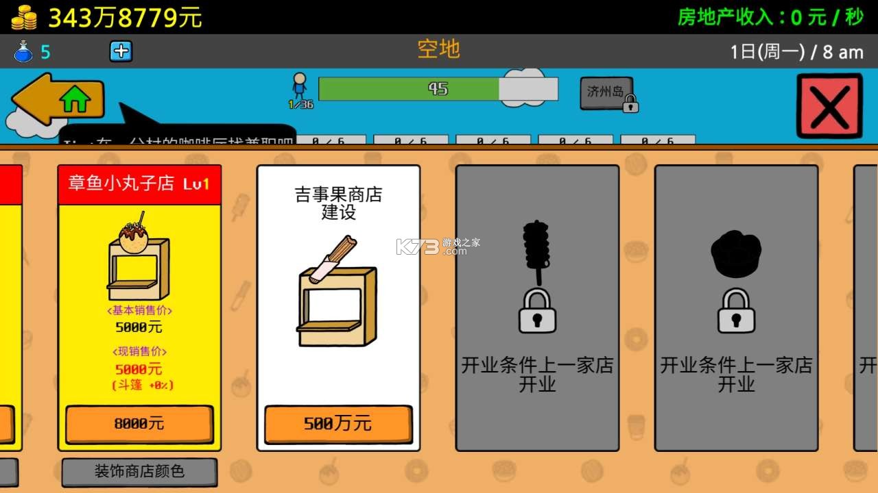 模拟养乞丐经营类型游戏。采用了动漫简约的画风设计,融入了收集,经营的玩法元素,你会帮助乞丐成为最富有的人,慢慢的解锁更多的游戏内容!拥有不同的游戏场景,让玩家在这里帮助一名乞丐,不断地解决各种危机,寻找商机,比如便利店、跆拳道、水族馆、市场等等。发展商业,发财致富!但是想要改变乞丐的心态,还是需要努力的